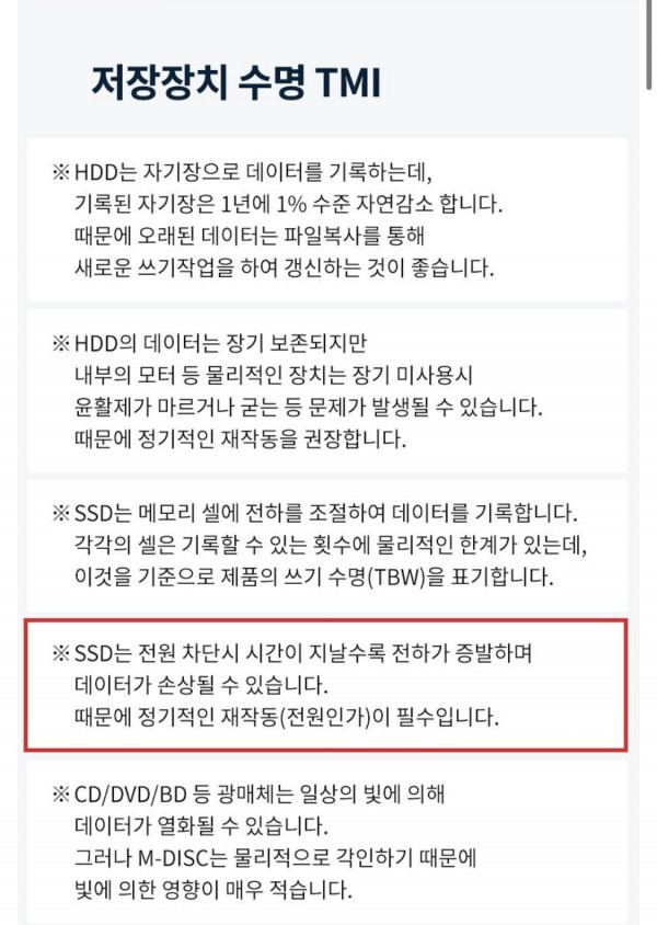 SSD 는 주기적으로 한번씩 전원 연결....
