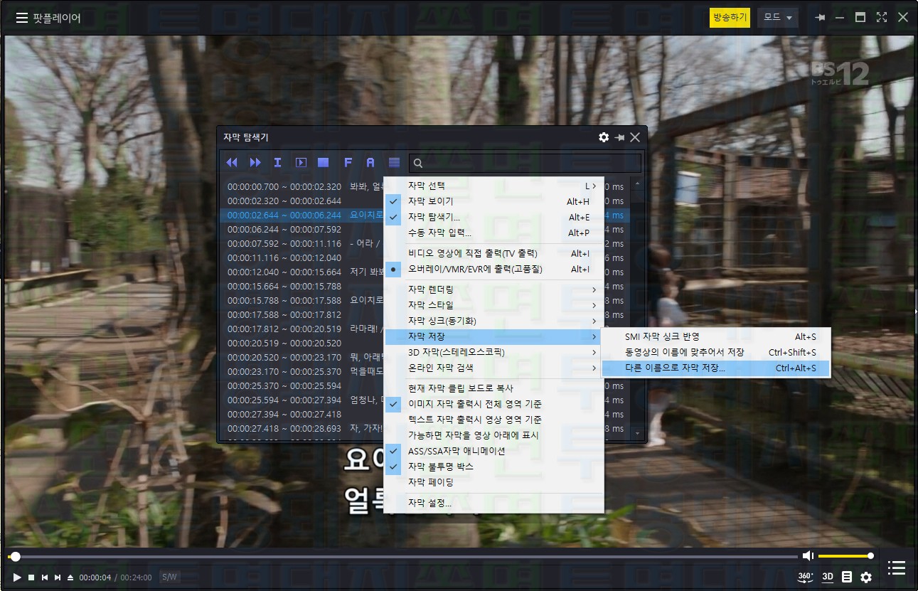 광고 시간 만큼의 반복적인 단락 조정에는 자막 탐색기(ALT+E) 메뉴에 들어가