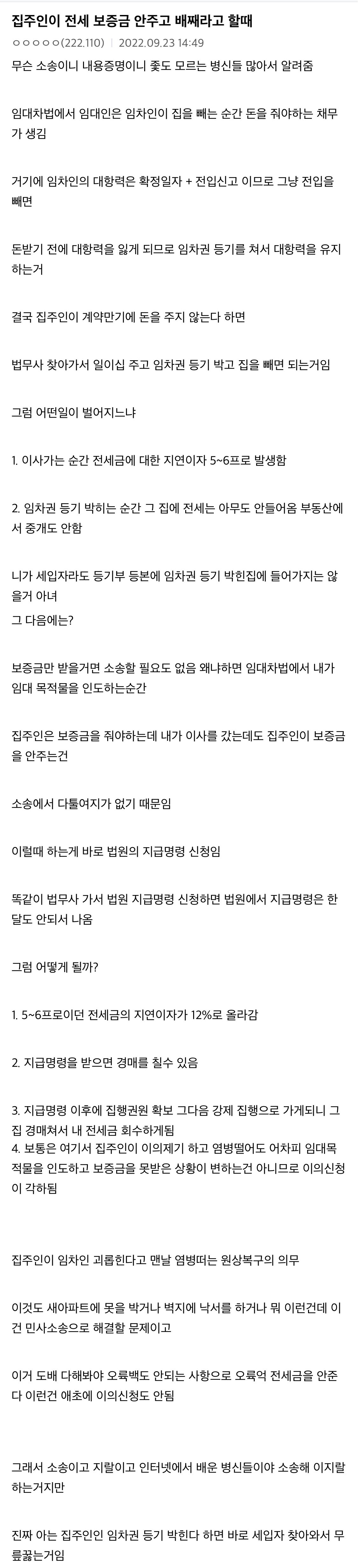 - 2023.06.21 [스크랩] 집주인이 전세금 안주고 배째라 할때 째는법