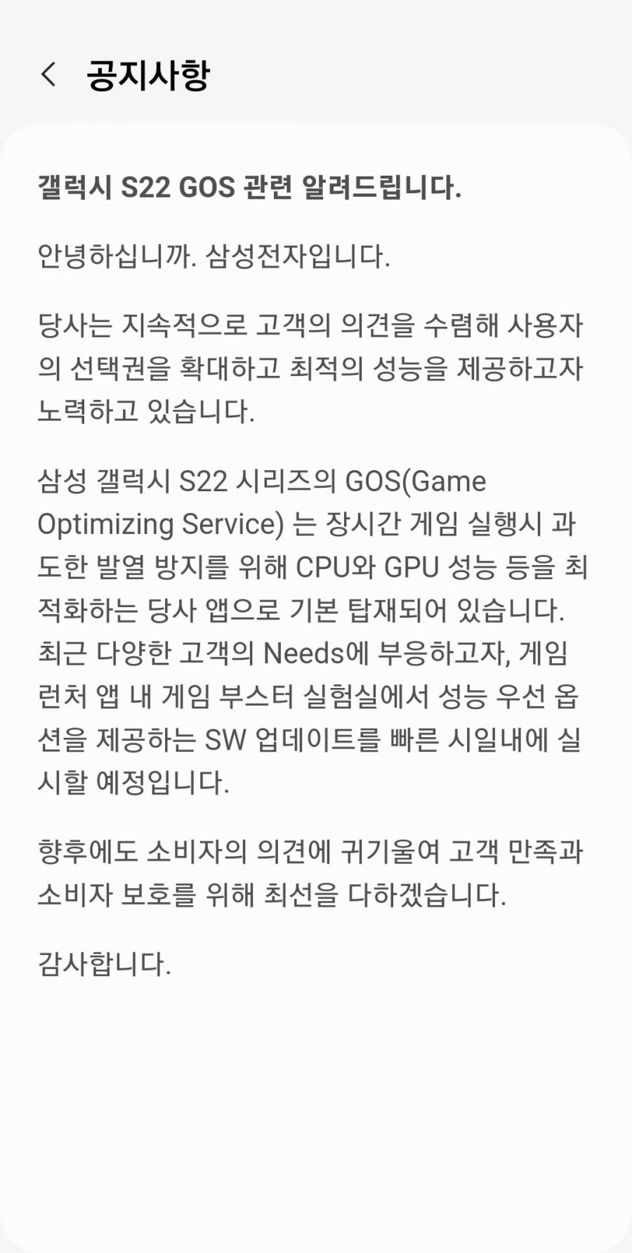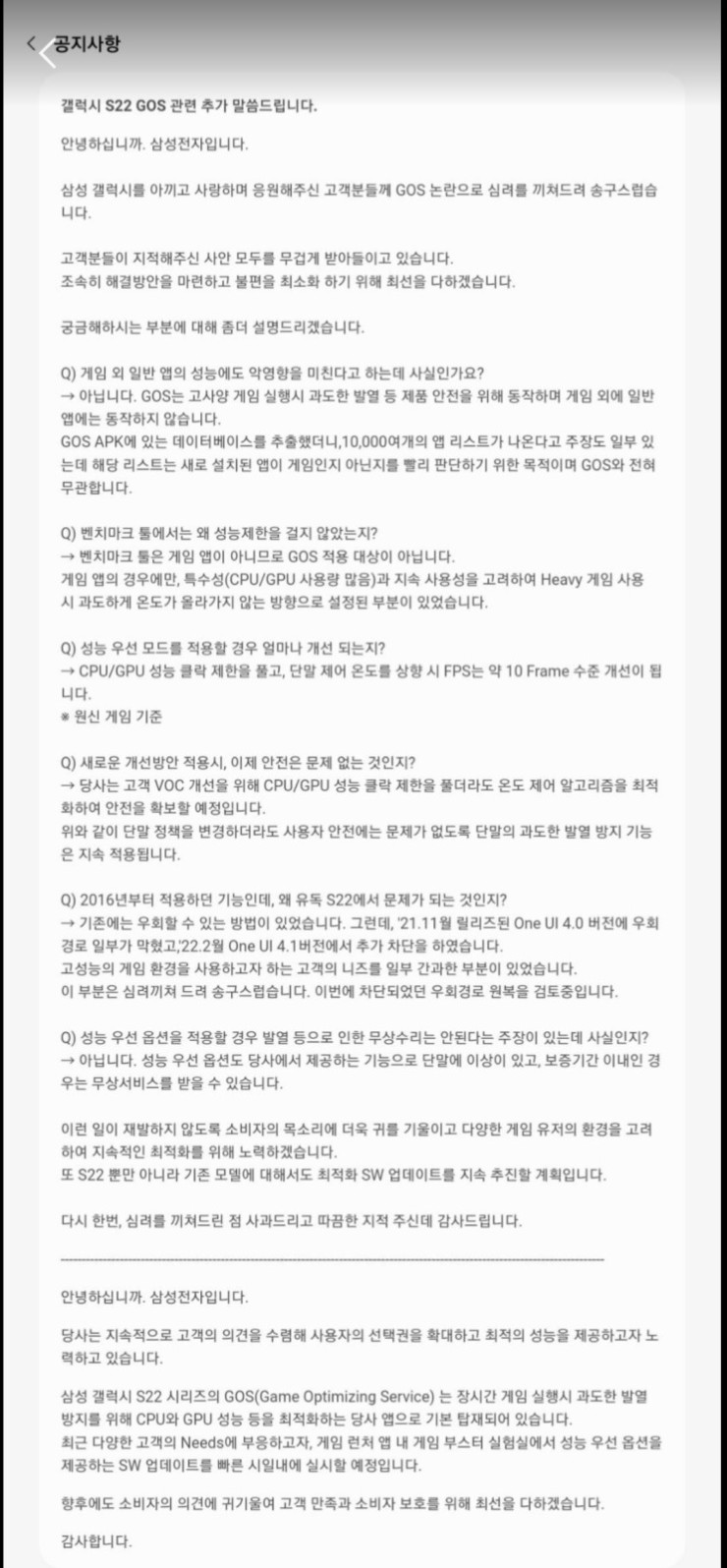 - 2022.03.15 [스크랩] 삼성 갤럭시 GOS 업데이트 정보