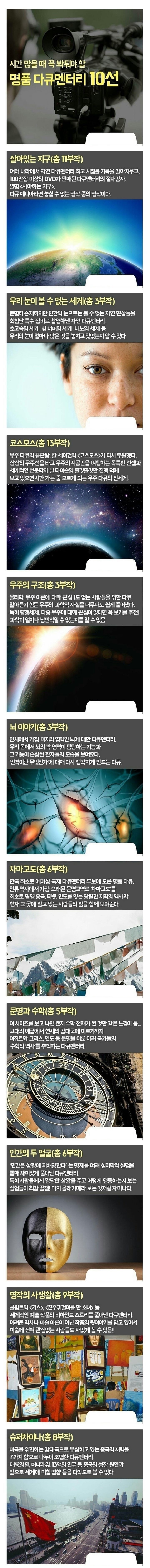 - 2022.02.24 [스크랩] 시간 많을 때 꼭 봐둬야 할 명품 다큐멘터리 10선