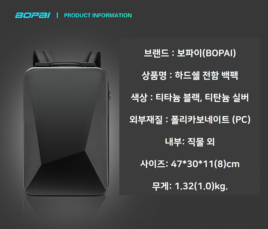 - 2023.02.12 보파이 백팩 하드재질 007가방 17인치 확장형 대용량