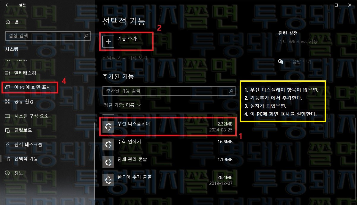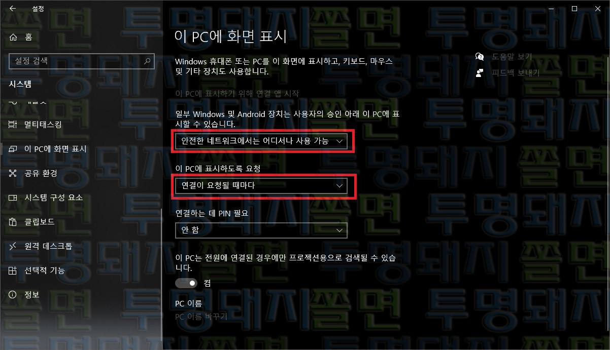- 2024.08.25 이 PC에 화면 표시 (윈도 10 기준)