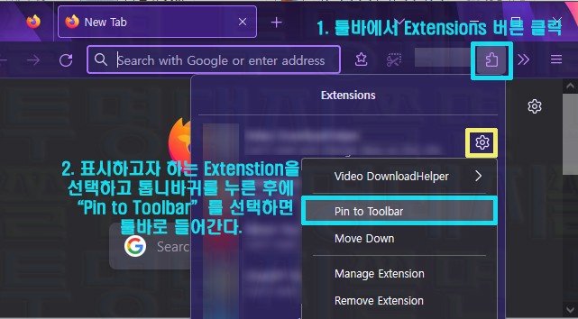 - 2023.08.14 파이어폭스 툴바에 Extensions 아이콘 나오게 하기