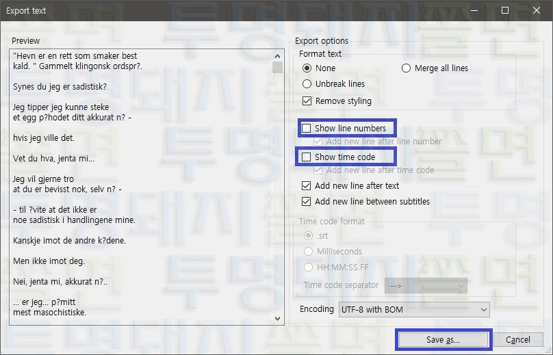 - 2021.09.08 자막파일에서 텍스트만 추출하기