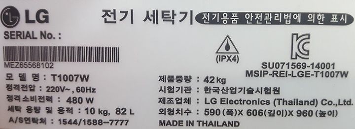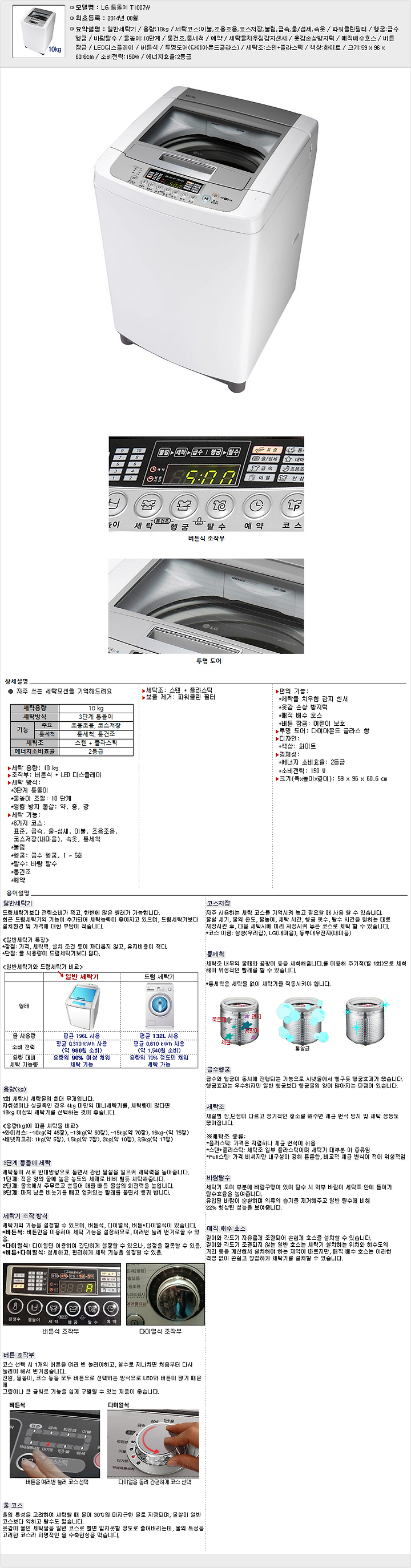 LG전자 세탁기 통돌이 T1007W